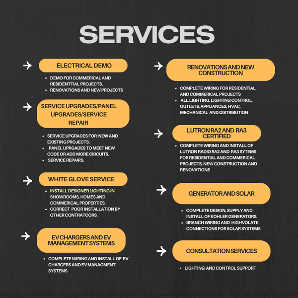 Do you have a project or idea that you would like to bring to life? Are you ready for an update or remodel? Trust our team with expert assembly and installation for your lighting needs, power needs and power disrtibution systems.